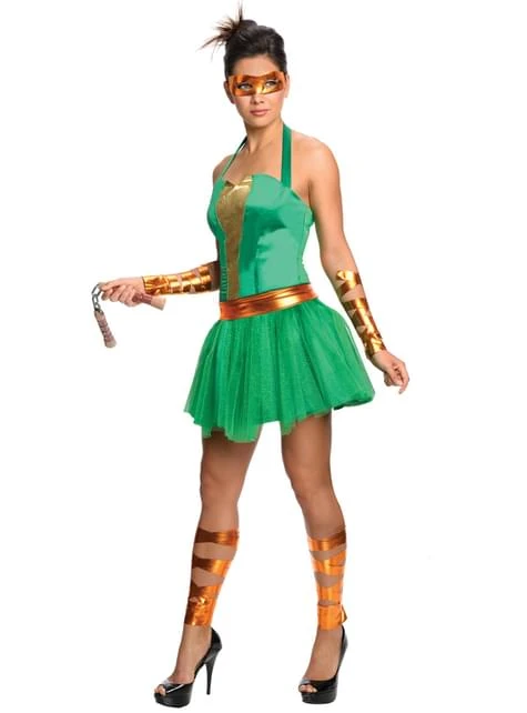 Incluye: vestido, cinturón, antifaz, cintas y caparazón.