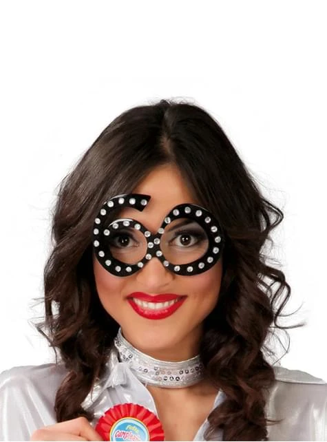 Incluye unas gafas con el número 60 en grande, de color negro y con apliques brillantes.