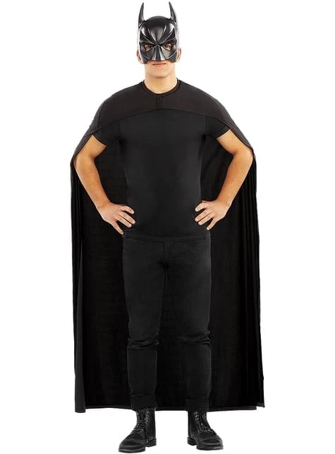 Increíble Kit Batman para hombre con gran realismo y calidad. Con este kit de capa y máscara de Batman seguro que triunfarás en cualquier fiesta de disfraces. ¡Podrás convertirte en Batman sin que nadie descubra tu verdadera identidad!