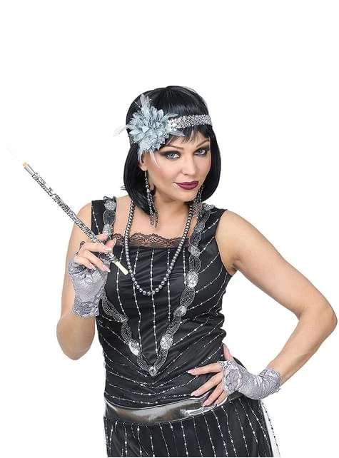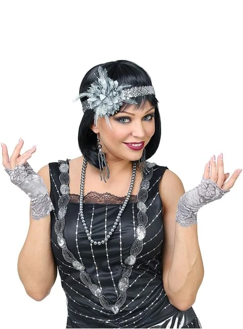 Incluye: cinta para la cabeza, pendientes con perlas y guantes sin dedos