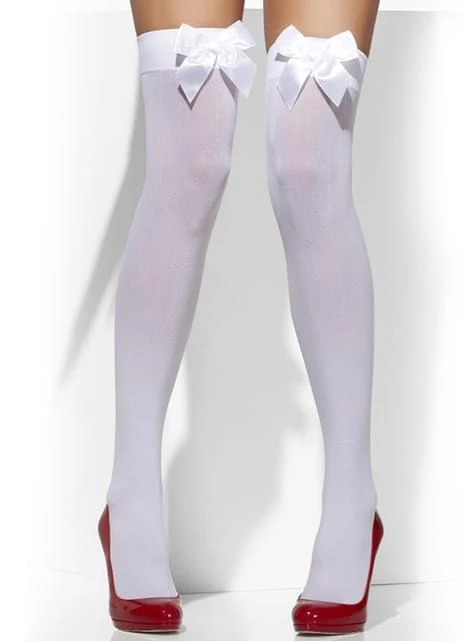 Completa tu disfraz y dale un toque de color con estas medias blancas con lazos blancos.