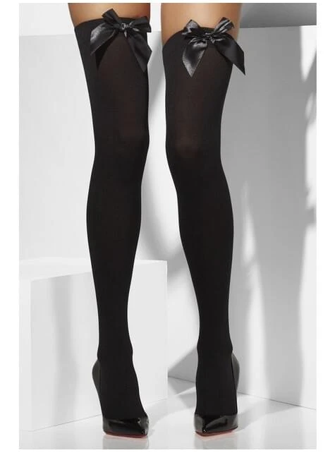 Serás la más sexy de la fiesta con estas medias negras con lazo sexy.