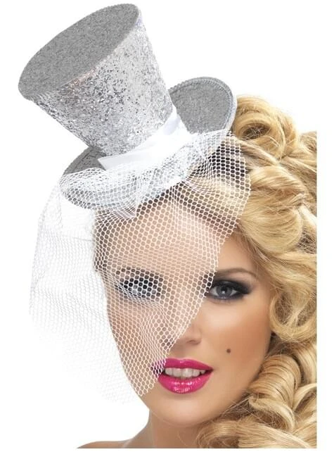 Incluye una diadema con una minichistera de color azul con redecilla desmontable.