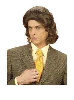 Retrocede en la vida y vuelve a los mejores años con esta peluca de hombre años 70 castaña.