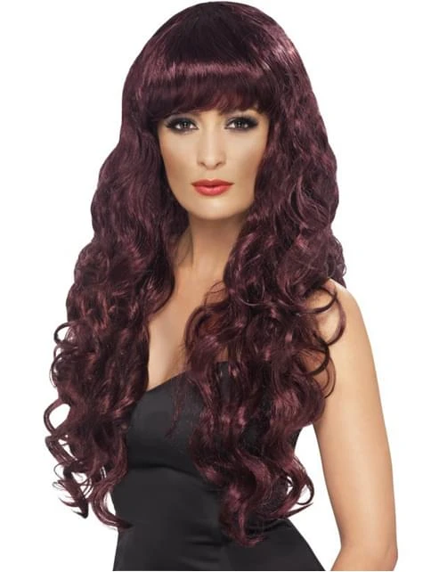 Ahora querrás ver tu melena al viento con esta peluca granate de sirena con flequillo.
