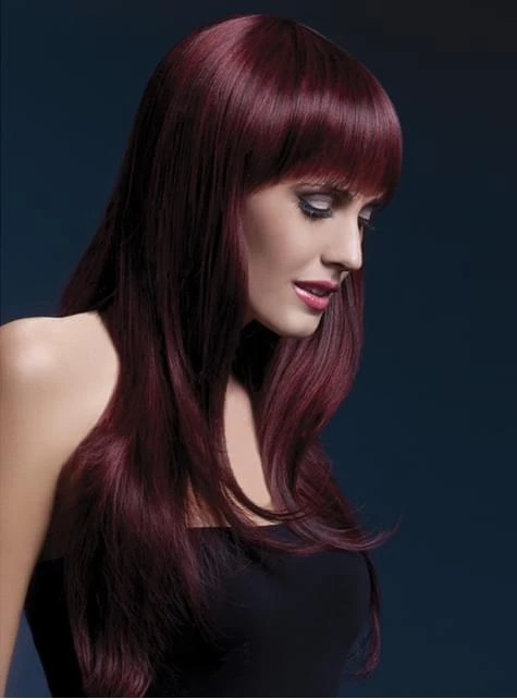 Incluye una peluca larga con capas, 66 cm. con flequillo recto de color negro.