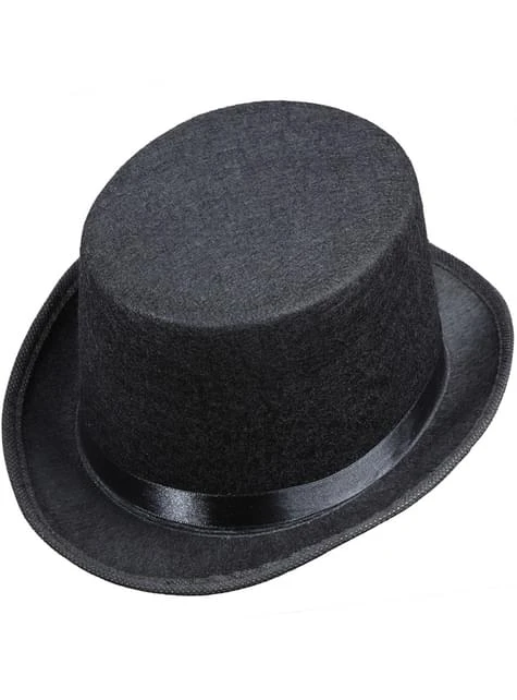 Incluye un clásico sombrero de copa de color negro, con una cinta negra.