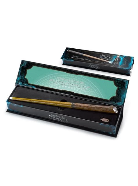 Esta versión luminosa de la varita mágica de Newt Scamander se ilumina al agitarla, y se apaga al agitarla de nuevo. Intensidad regulable. Mide 35 cm aproximadamente, y es vendida con su funda.